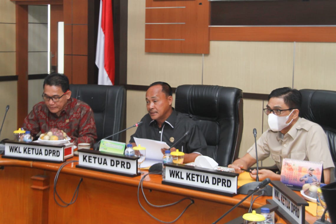 Kedua agenda tersebut disetujui dalam rapat yang dihadiri Plt Bupati Musi Banyuasin Beni Hernedi SIP diwakili Asisten Pemerintahan dan Kesra Sekretariat Daerah Kabupaten Muba H Yudi Herzandi SH MH. Rapat sendiri dipimpin oleh Ketua DPRD Muba Sugondo serta dihadiri Anggota Badan Musyawarah DPRD Muba serta Perangkat Daerah Muba di Ruang Rapat Banmus DPRD Muba, Senin (7/3/2022).