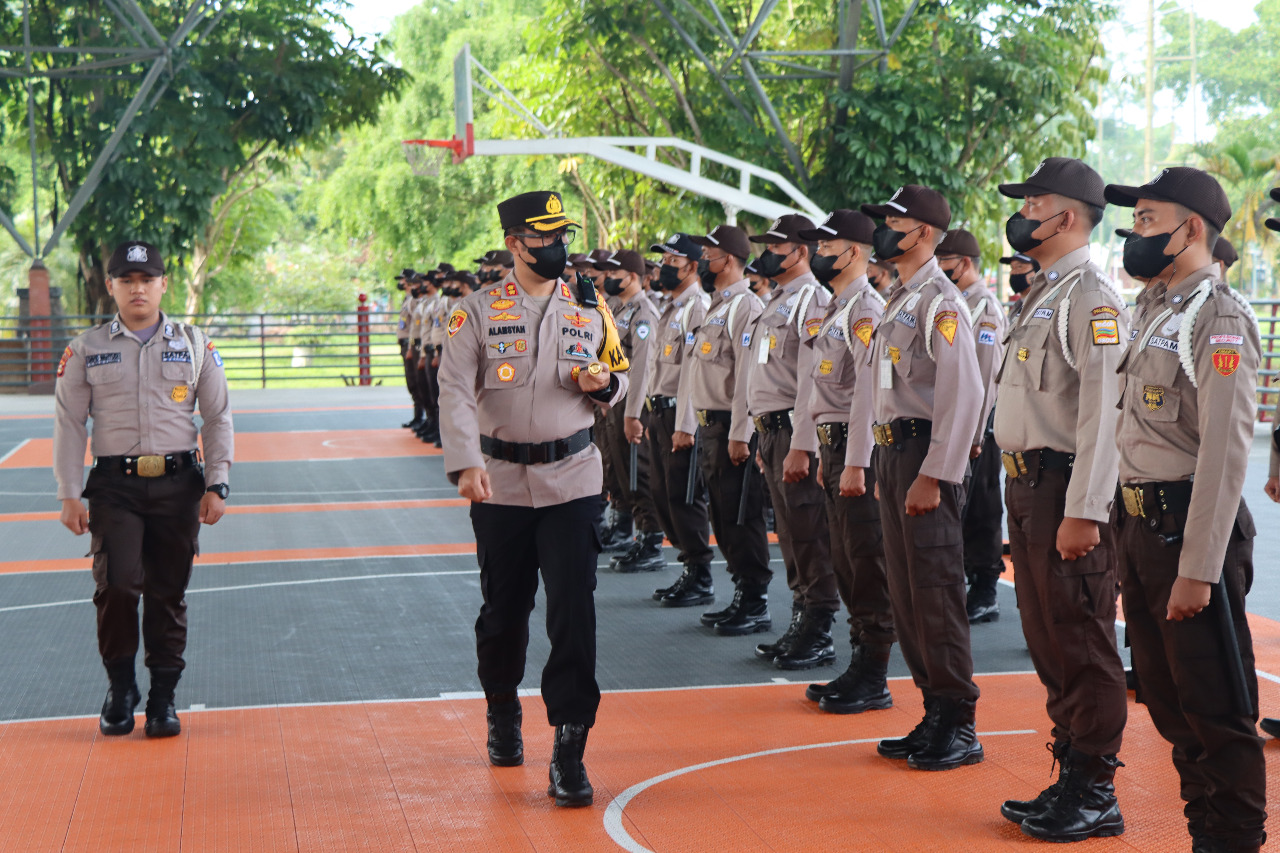 Kapolres Muba AKBP Alamsyah Pelupessy SH SIK MSi memimpin apel Konsolidasi Satpam Polda Sumsel Polres Musi Banyuasin bertempat di stabel berkuda sekayu Musi Jum’at (24/06/2022)