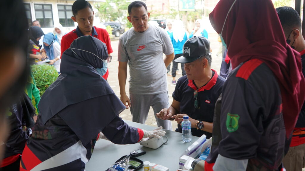 Berdasarkan pantauan kami Selain Senam Sehat bersama, dinas kesehatan kabupaten Musi Banyuasin juga melakukan cek, kolesterol,gula darah,asam urat,Kadar nikotin.(Jay)