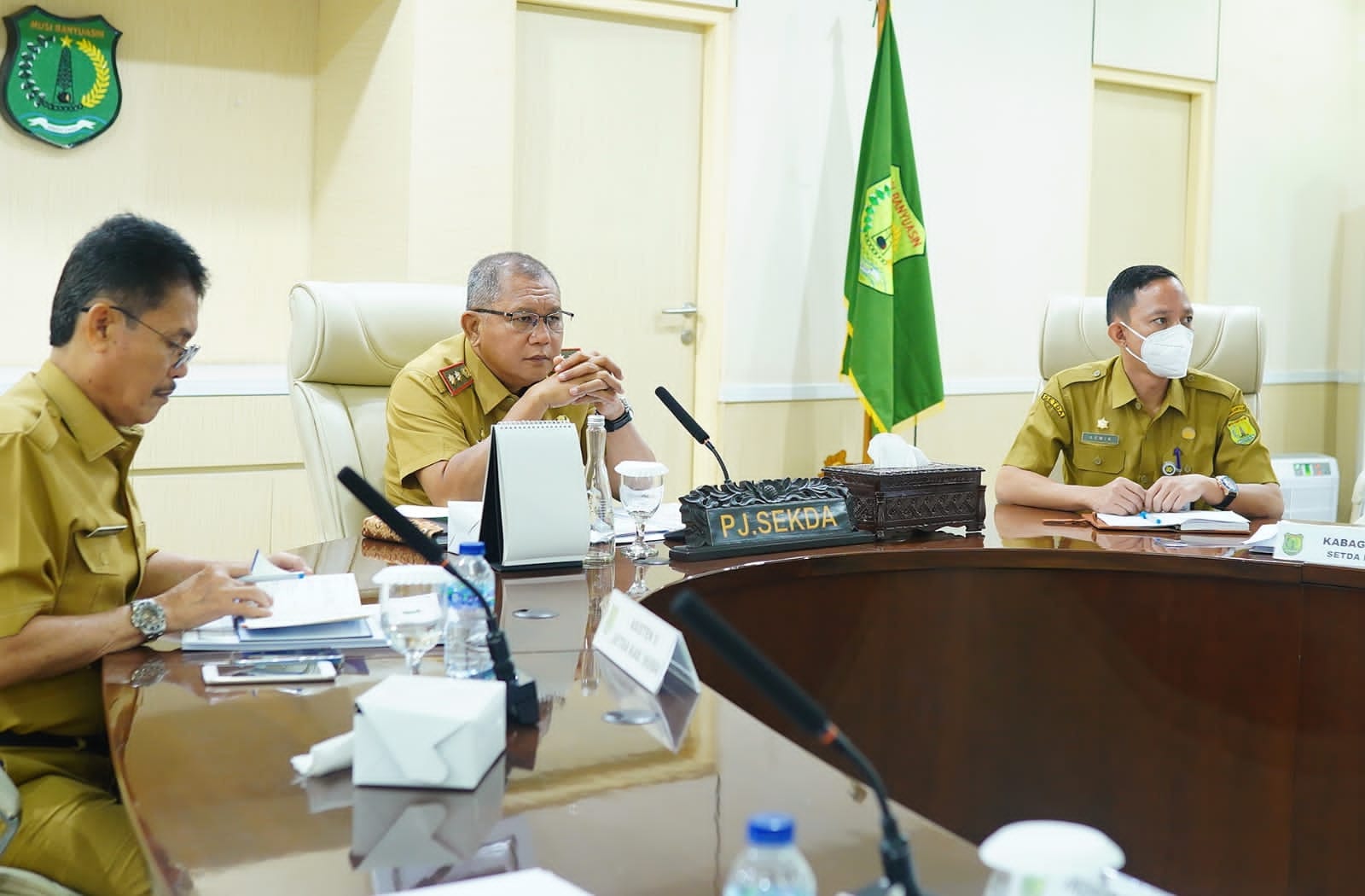 SEKAYU- Penjabat (Pj) Bupati Musi Banyuasin Drs H Apriyadi melalui Pj Sekretaris Daerah Muba Musni Wijaya SSos MSi, mengikuti rapat koordinasi Pengawasan Pengendalian Inflasi Daerahsecara virtual, Selasa (23/8/2022) di Ruang RapatSerasan Sekate.