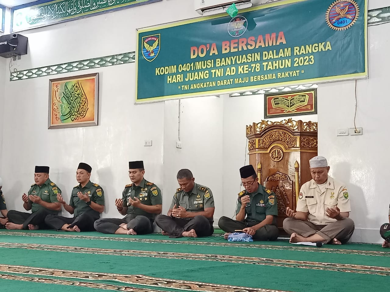 Dalam kesempatan ini Letkol Inf Erry Dwianto, S.Psi.,M.Han Komandan Kodim 0401 Musi Banyuasin menyampaikan juga bahwa Kita bersama-sama menjalankan Perintah Komando atas untuk melaksanakan Doa bersama, kegiatan ini jangan hanya seremonial saja, akan tetapi kita dapat mengambil hikmah dari Hari Juang TNI AD untuk meningkatkan amal ibadah kita.ujarnya