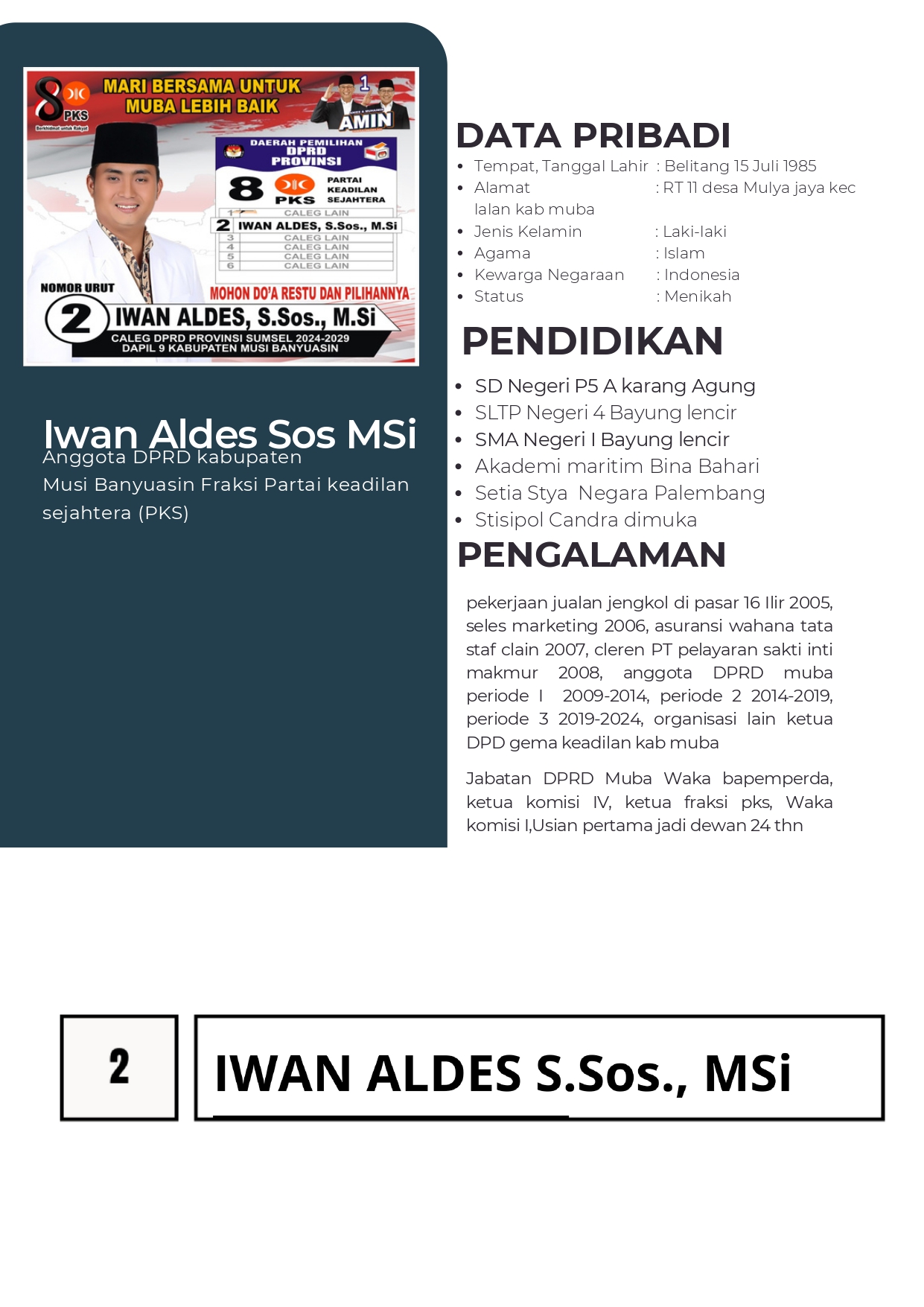 Jabatan DPRD Muba Waka bapemperda, ketua komisi IV, ketua fraksi pks, Waka komisi I,Usian pertama jadi dewan 24 thn