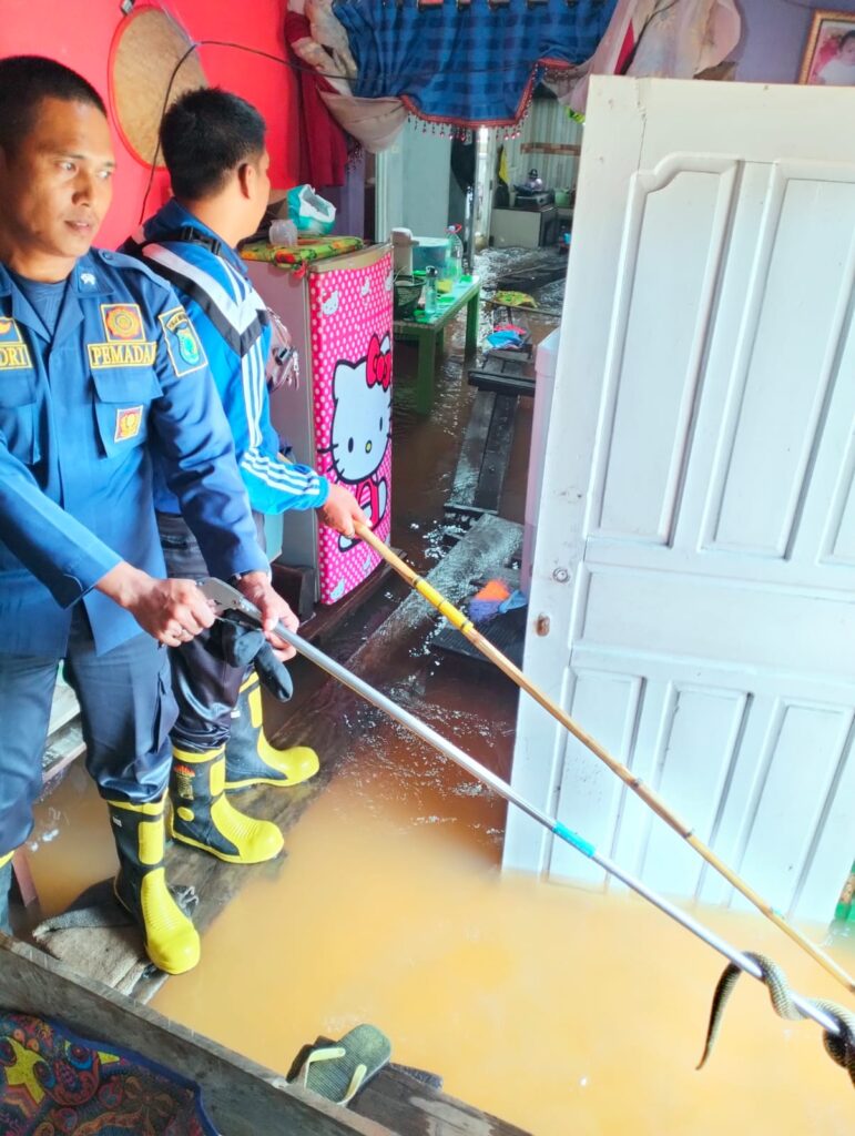 Saya menghimbau Kepada masyarakat harus berhati-hati dengan binatang berbisa salah satu nya ular karena di Saat banjir ular’ juga mencari tempat yang aman, apabila ada kendala Prihal tersebut damkar siap melayani