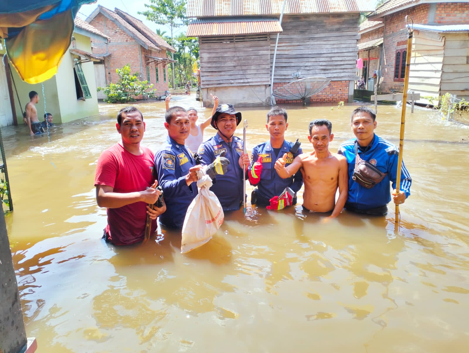 Dengan sigap Anggota damkar Musi Banyuasin dipimpin Kasi Operasi dan Penyelamatan Nurhadi Jaya , SE Menembus genangan banjir Petugas damkar menangkap binatang buas king kobra masuk di Rumah Warga