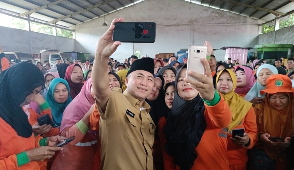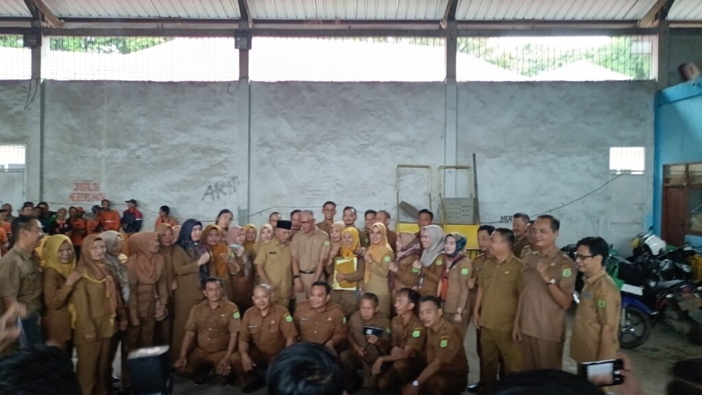 Terpancar gembira dari raut muka Pegawai Harian Lepas Dinas Lingkungan Hidup kabupaten Musi Banyuasin saat bertemu PJ Bupati Musi Banyuasin Drs H Apriyadi Msi.yang langsung menyerahkan bantuan Sembako Bagi Pegawai Harian Lepas Dinas Lingkungan Hidup Kabupaten Musi Banyuasin yang Terdampak Bencana Banjir
