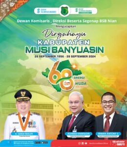 Ucapan Hut Musi Banyuasin ke 68 Tahun AQJnews.com September 28, 2024 Baca Juga : Bak Lautan Manusia, Masyarakat Muba Padati Sepanjang Kolonel Wahid Udin Saksikan Karnaval