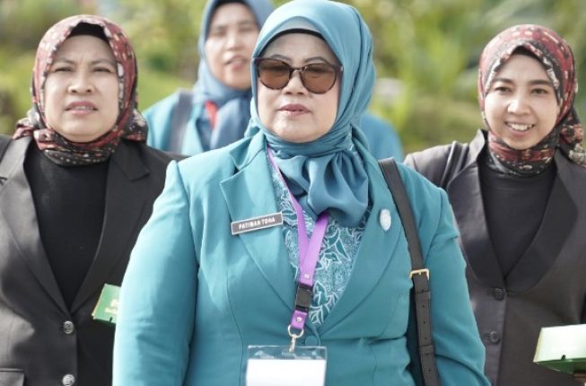 SAMARINDA, KALTIM — Mengenakan busana khas kader PKK berwarna hijau tosca lengkap, Ketua TP PKK Kabupaten Musi Banyuasin Hj Patimah Toha tampil anggun dan penuh semangat. Kehadirannya dalam Sidang Pleno Rapat Kerja Nasional (Rakernas) X sekaligus Puncak Peringatan Hari Kesatuan Gerak (HKG) PKK ke-53 menjadi simbol komitmen kuat Muba dalam mendukung gerakan nasional pemberdayaan keluarga.